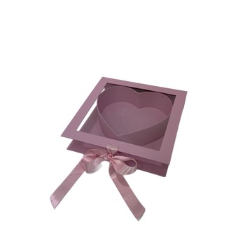 صندوق عرض الزهور على شكل قلب | صندوق هدايا مربع بنافذة - تغليف هدايا فاخرة وتذكارية